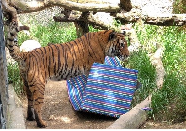 Malayan tigers like Mederu are critically endangered, with less than 300 left in the wild, so hosting things like birthday parties are a fun way for the Charles Paddock Zoo to teach people about them.